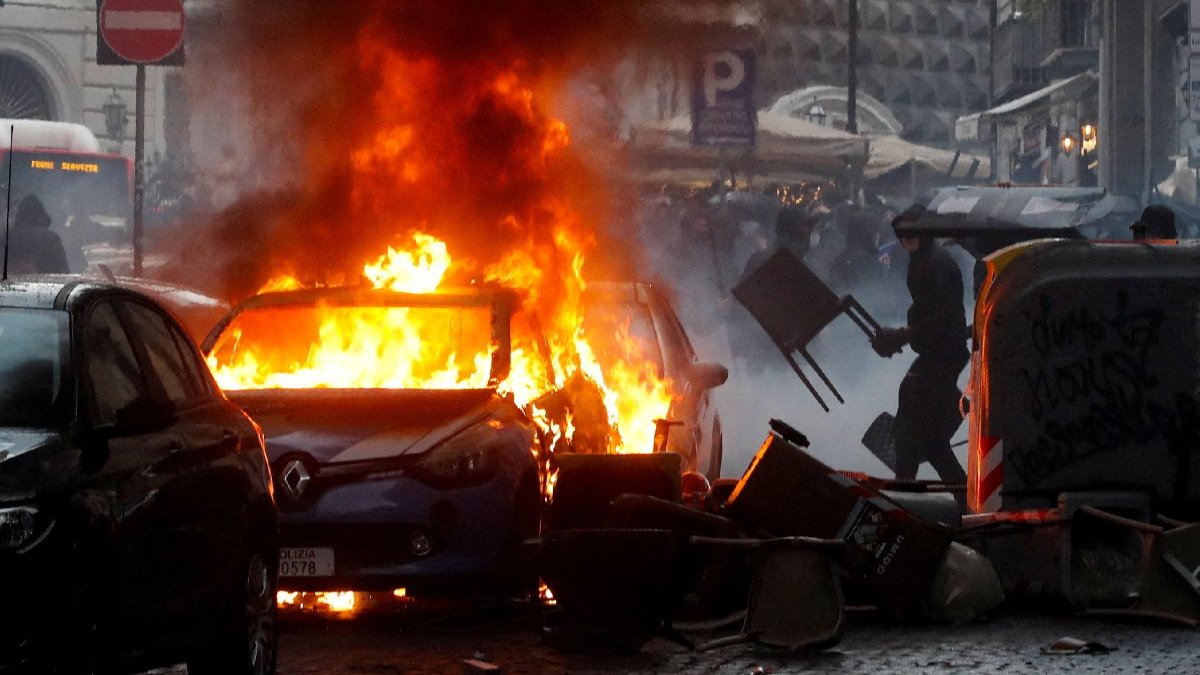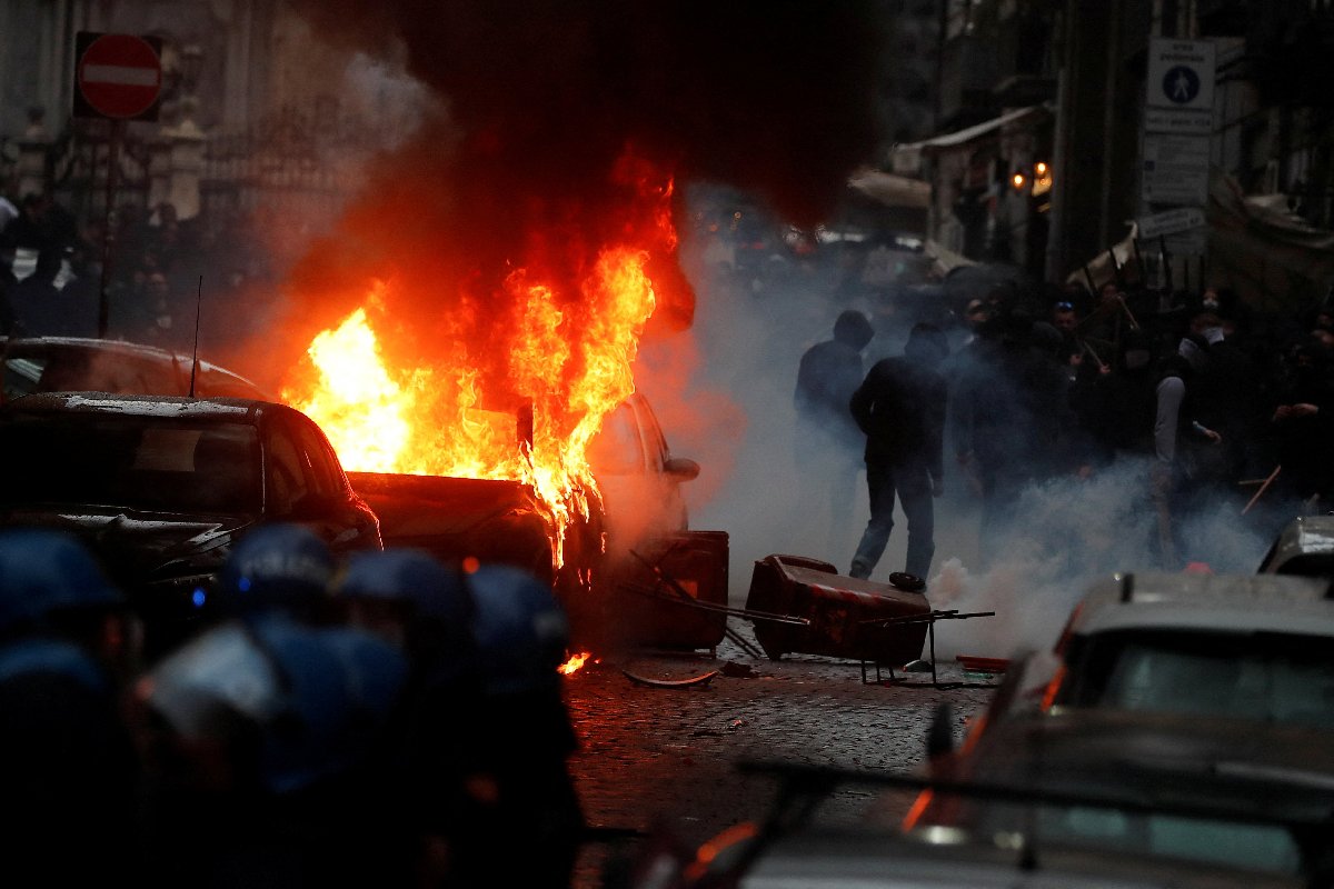 Napoli ile Eintracht Frankfurt arasında dün oynanan ve ev sahibi takımın 3-0 kazanarak çeyrek finale yükseldiği müsabaka öncesi ve sonrasında çıkan olaylarla Napoli kent merkezi savaş alanına döndü.
