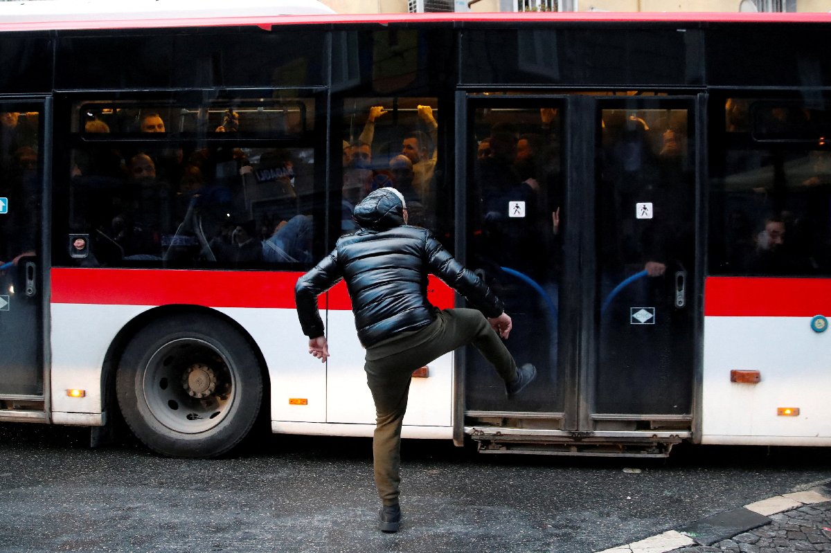 Napolili taraftarlara, İtalyan polisi engel olurken bu sırada taraftarların çok sayıda patlayıcı madde ve havai fişek attığı kaydedildi.