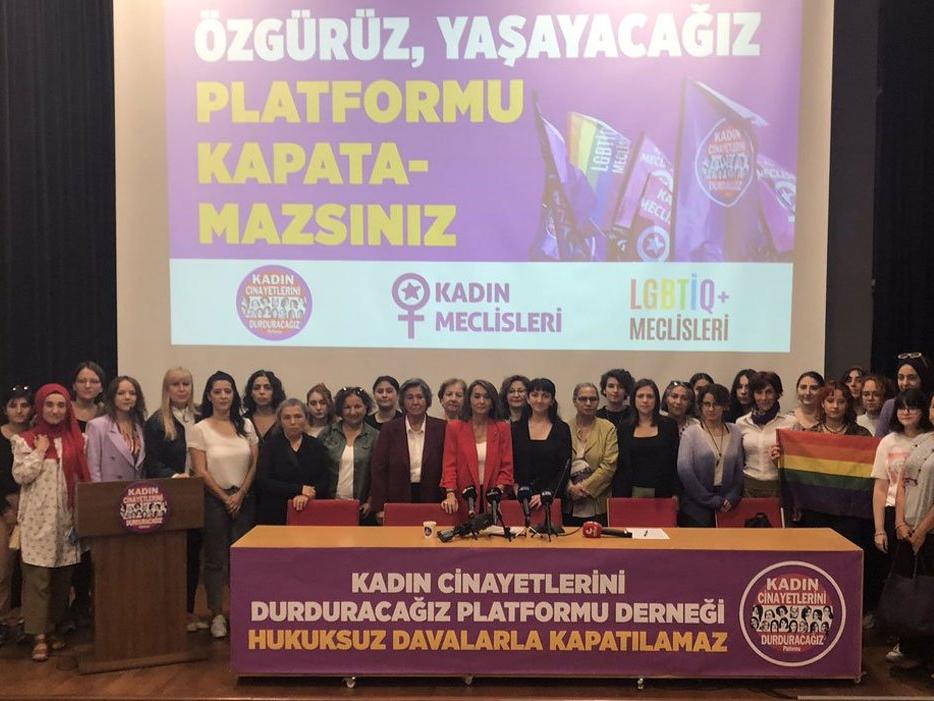 Kadın Cinayetlerini Durduracağız Platformu hakkında açılan kapatma davasıyla ilgili platform kadın avukatlar ve öldürülen kadınların aileleriyle birlikte basın toplantısı düzenledi.