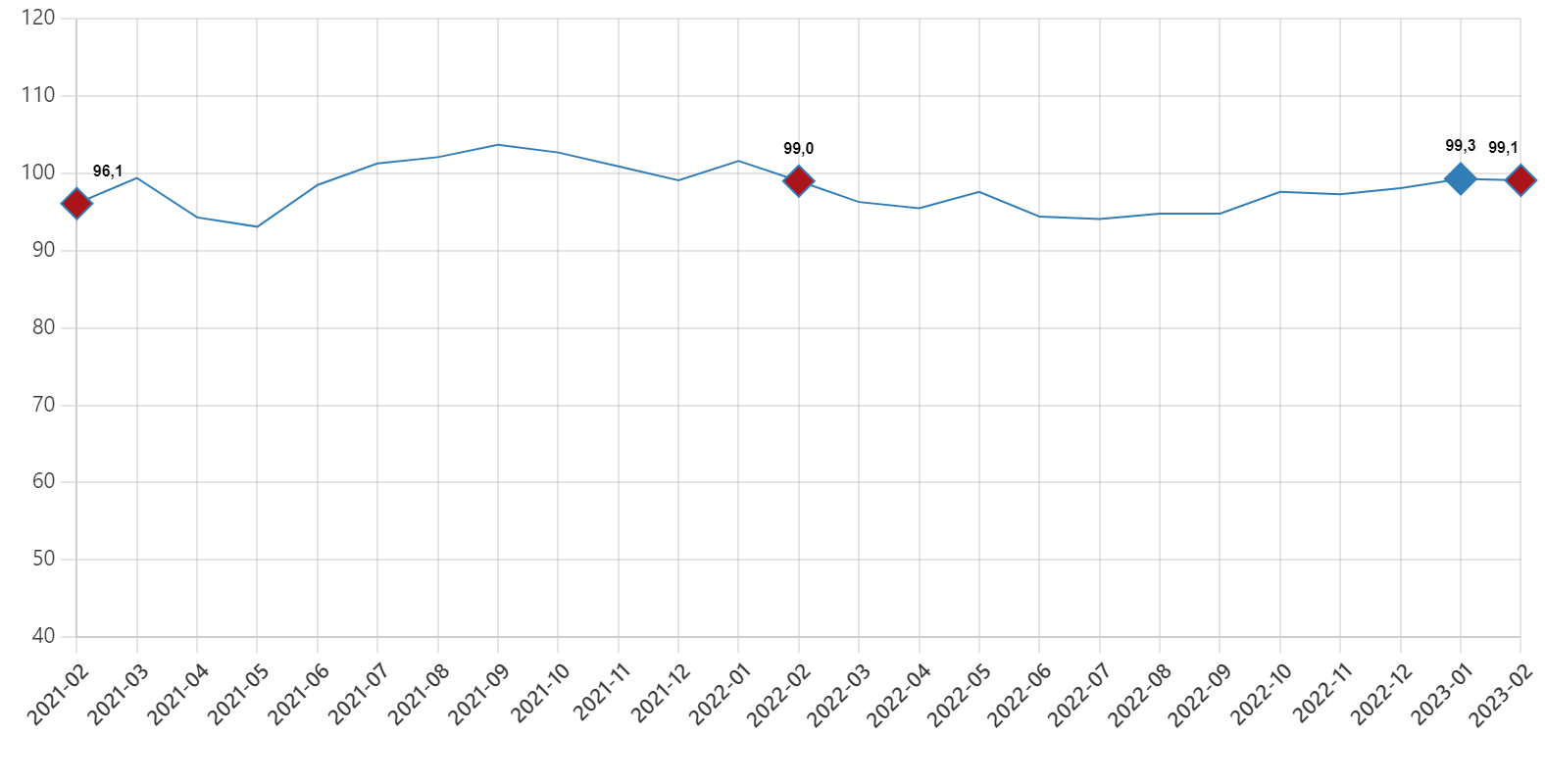 Ekonomik güven endeksi, Şubat 2023SANAYİ, HİZMET, PERAKENDE VE İNŞAATTA GÜVEN AZALDI