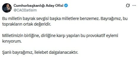 Milletimizin birliğine, dirliğine karşı yapılan bu provokatif eylemi kınıyorum.