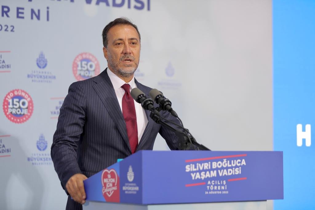 İBB ile iş birliğiyle Boğluca Yaşam Vadisini ilçeye kazandırdıklarını kaydeden Silivri Belediye Başkanı Volkan Yılmaz da, “Belediye başkanları, yerel hizmet makamları siyasetin karıştırılmaması, siyasetten ari tutulması, siyasi mülahazalardan uzak tutulması gereken yerler. Sizlerin vergileriyle yapılan hizmetler. Kreş yerlerinin tahsislerinde, engelsiz yaşam alanı merkezlerinin, tuvaletlerin ve birçok projede İstanbul Büyükşehir Belediyemizle işbirliği yaptık. İş birliği yapmaya devam etmeyi düşünüyoruz” diye konuştu.