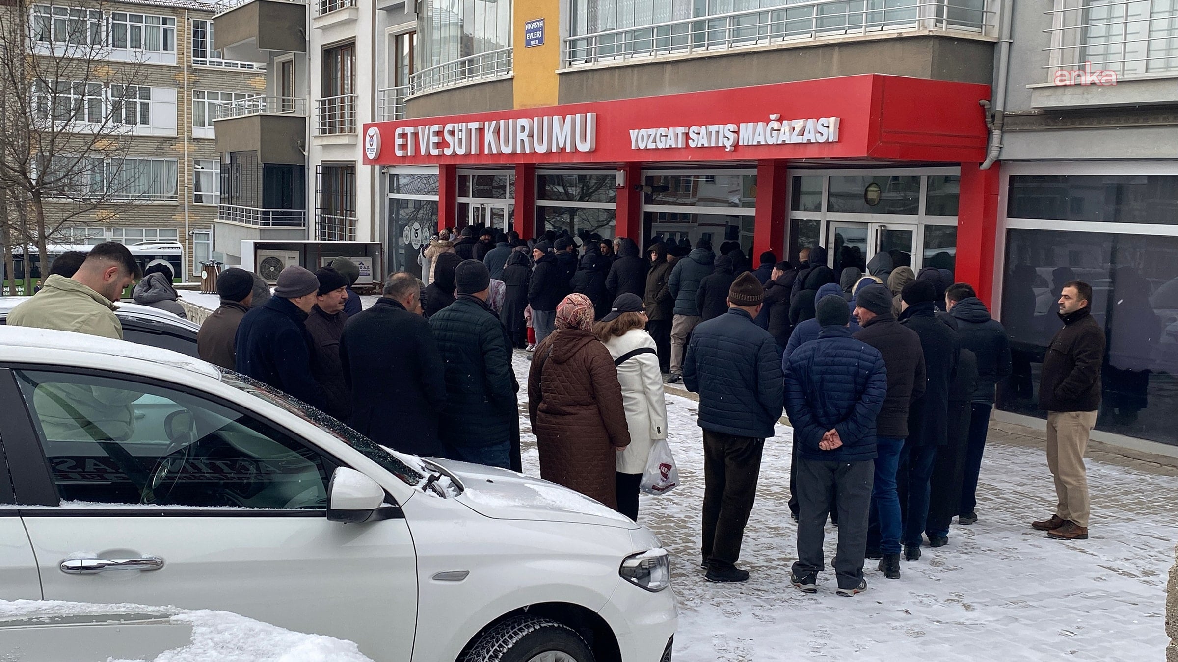 Yozgat’ta bulunun ESK mağazasının önünde soğuk hava ve kar yağışına aldırmadan kuyruğa giren vatandaşlar, kameralara konuşmaktan çekinirken, bazıları da çekim yapılmasına tepki gösterdi.