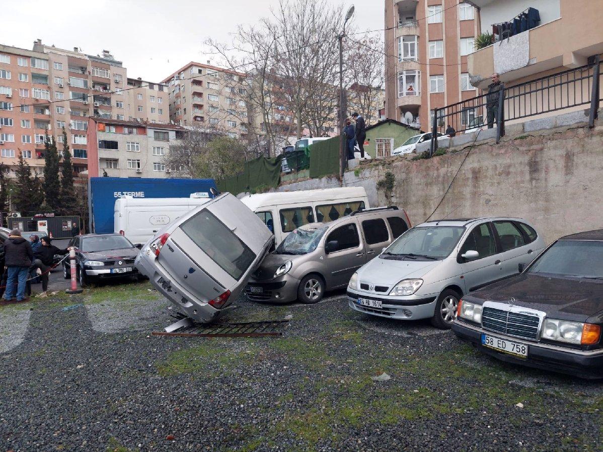 Olay, Gürsel Mahallesi Erzincan Sokak'ta 7 Nisan Perşembe saat 18.10 sıralarında meydana geldi. İddialara göre, sürücüsünün yokuşta el frenini çekmeden park ettiği otomobil, bir süre sonra geriye doğru hareket etti. Tesadüf eseri, hiçbir yere çarpmadan geri geri yokuş aşağı ilerleyen otomobil, sokağın sonundaki demir korkulukları parçalayarak açık otoparktaki araçların üzerine düştü. O esnada, yaşananlardan habersiz sokakta yürüyen bir kadın, otomobilin altında kalmaktan saniyelerle kurtuldu.