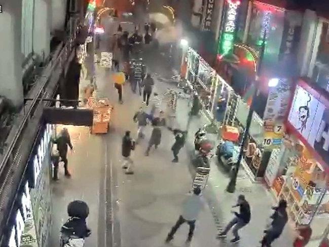 Kent merkezinde köftecilerin bulunduğu sokaktaki kameraya, deprem ile birlikte iş yerlerinden koşarak çıkanların sağa sola kaçmaları yansıdı. Sarsıntı ile bir binanın kısmen yıkılmasıyla birlikte sokağın toz duman içinde kaldığı da görüldü.