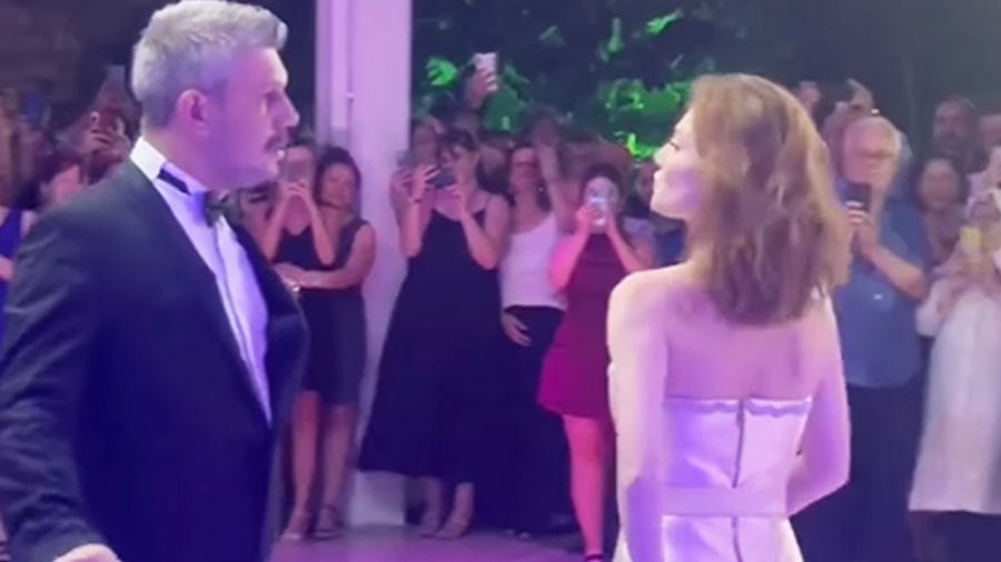 Oyuncu Elçin Sangu kuzeninin düğününde Çerkes yöresel oyunu olan 'Qafe'yi oynadı.