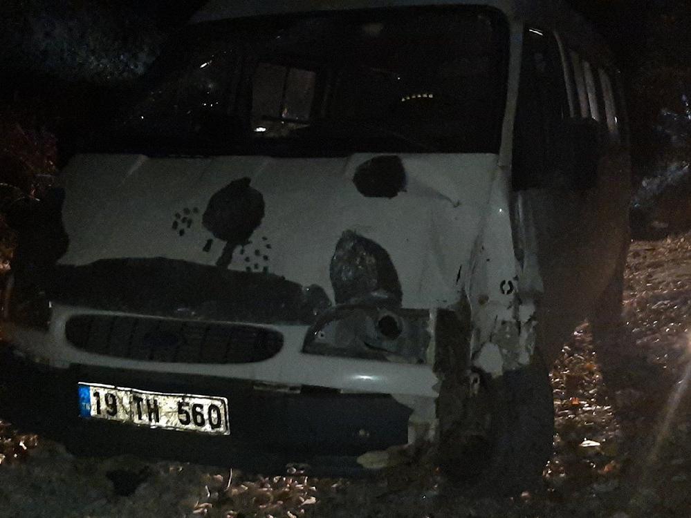 Belirtilen adreste hasarlı bir elektrik direği ile yola serilmiş elektrik kabloları ile karşılaşan ekipler, çevrede yaptıkları aramada yaklaşık 200 metre uzaklıktaki ağaçlık alanda 19 TH 560 plakalı minibüsü buldu.