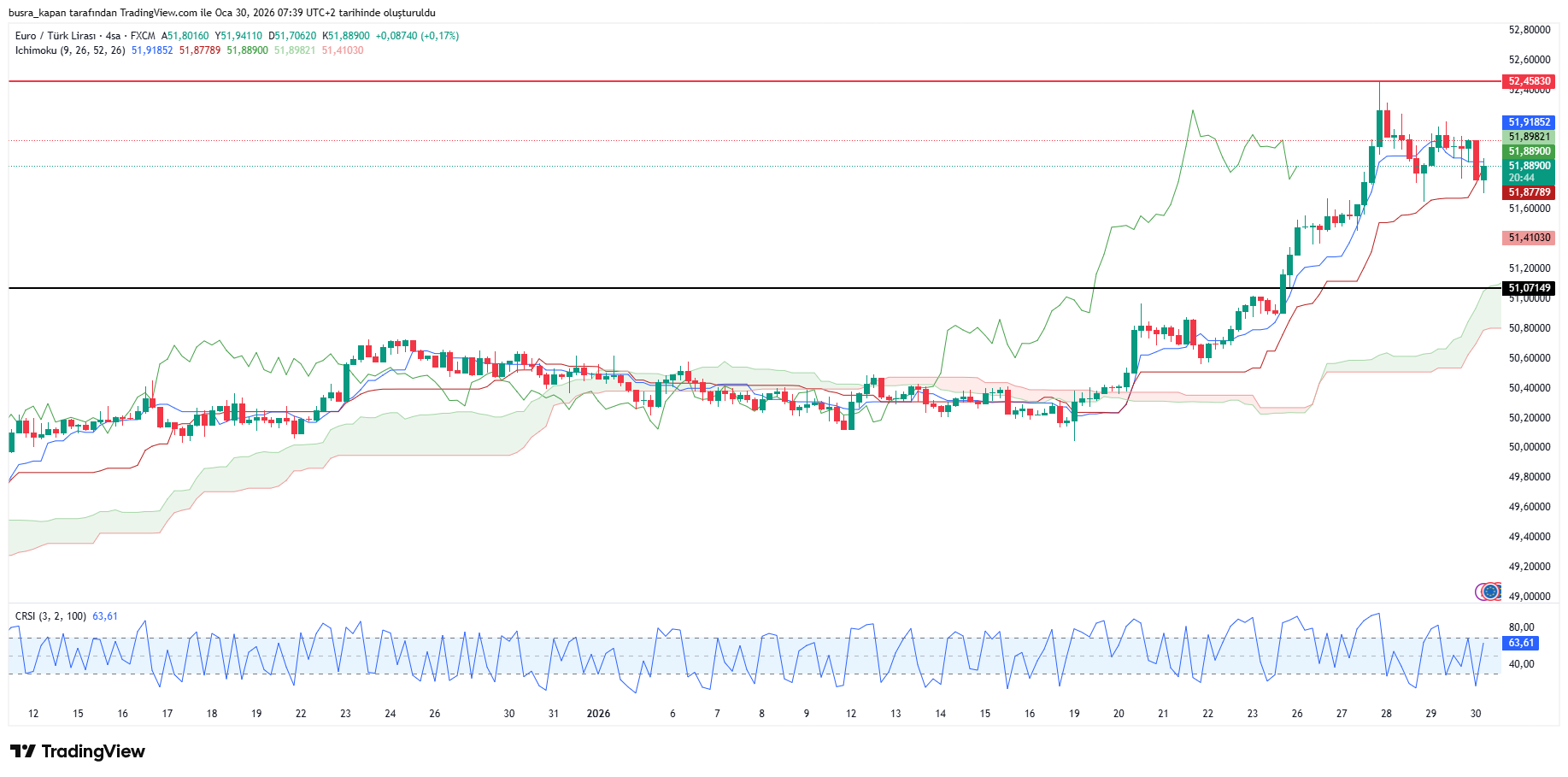 Euro/TL'de de yükselişlerin olduğu görülüyor. Euro/TL yeni günde 08.38'de 51,88 seviyesinde bulunuyor.