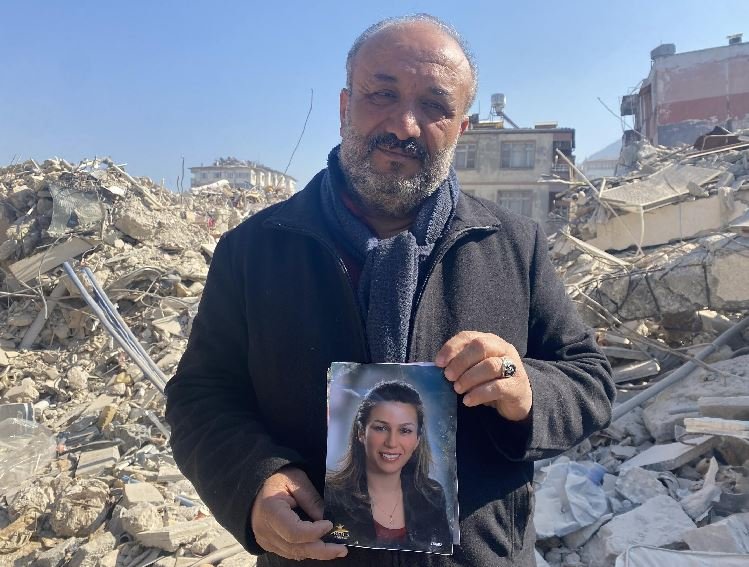 Eşinin fotoğrafı ile enkaz önünde günlerdir bekleyen Cahit Aşkar, "Deprem günü, Yayladağı'ndaki evimizde kalmıştım. Eşim ve iki çocuğum ise Antakya'daydı. Depremin olduğu gün, hava soğuk olduğu için hemen arabayla yola çıktım. Gelmem 2 saati geçti. Geldiğimde binayı gördüm ve şoke oldum. Kağıt gibi olmuştu. Çocuklarım ve eşime sürekli seslendim ama ses alamadım. İlk gün böyle geçti. Tüm bina sakinlerinin aracı sokaktaydı ve kimsenin çıkamadığını anladım" dedi.