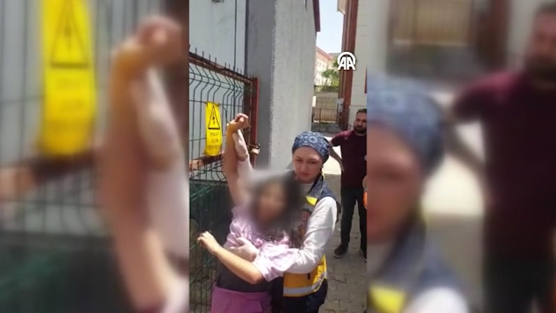 Çevredekilerin ihbarı üzerine olay yerine itfaiye ve 112 Acil Sağlık ekipleri sevk edildi. İtfaiye ekipleri, çocuğun demir korkuluklara saplanan elini kurtarmayı başaramayınca demirleri kesti.