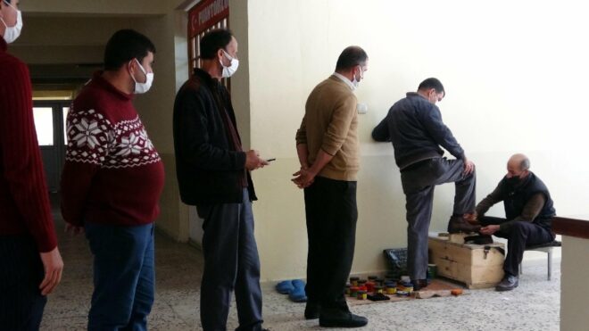Beş çocuk sahibi olan Ömer Turan, düğünlerde zurna çalarak geçimini sağlayan babasını 10 yıl önce kaybedince beraber yaptıkları mesleği bırakıp, ayakkabı boyamaya başladı.