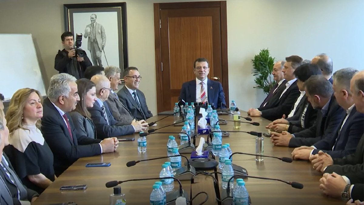 Aralarında Türk-İş, TOLEYİS, TÜMTİB, TEZKOOP, TGS’nin de bulunduğu emek örgütlerinin yöneticileri, İBB Başkanı Ekrem İmamoğlu’nu Saraçhane’deki başkanlık binasında ziyaret ederek destek verdi.