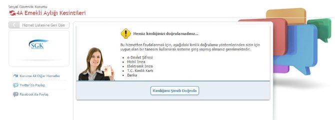 Bu sayfada emekli maaş kesintisi için kimlik doğrulaması istenir. Üyelik girişi yapıldığında uygulamadaki engel de kalkmış olacaktır. Eğer kişiler yanlış emekli maaş kesintisi uygulamasını kullanırsa ya da emeklilik durumu yoksa ekranda hata mesajı yayınlanır. Fakat emekli maaşı alınıyorsa, ekranda şöyle bir sonuç sayfası açılır.