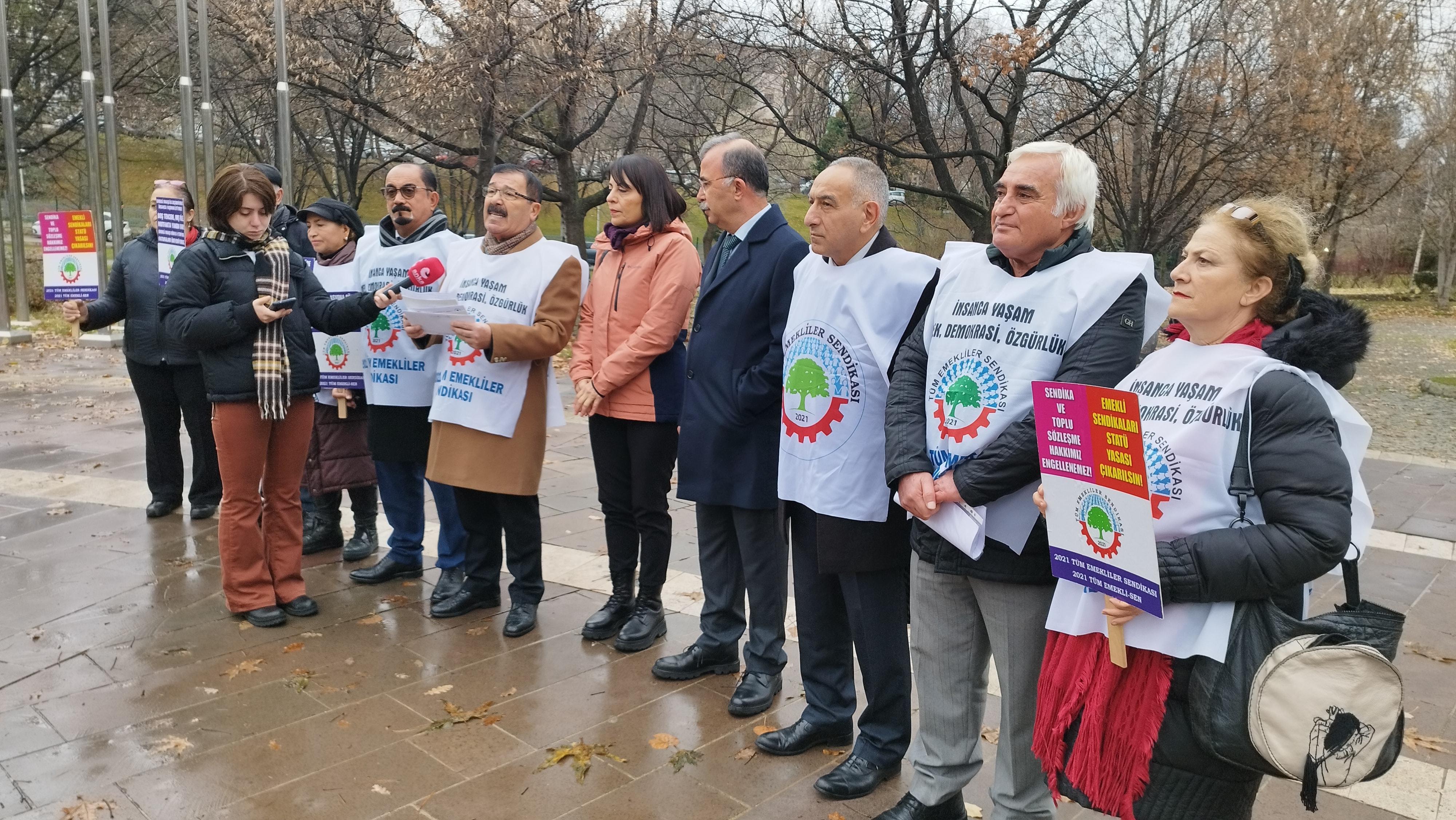 Tüm Emekliler Sendikası üyesi emekliler TBMM önünde toplanarak eylem yaptı. Genel Başkan Selman Hürkardeş: “Yıllarca çalışan vergi ve sigorta primi ödeyen emekliler dilenci değil, sadaka istemiyor, insanca yaşayacak bir maaş istiyor.