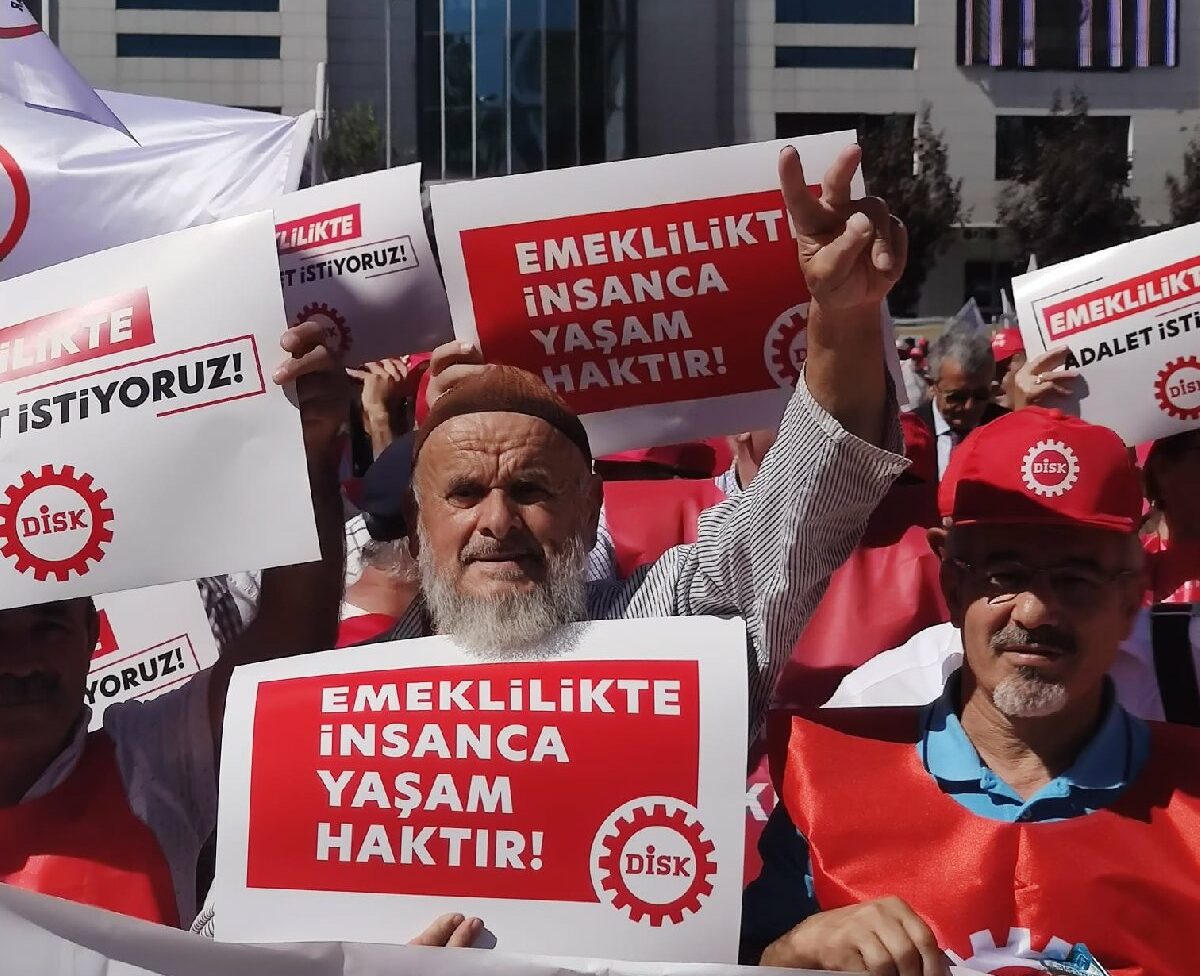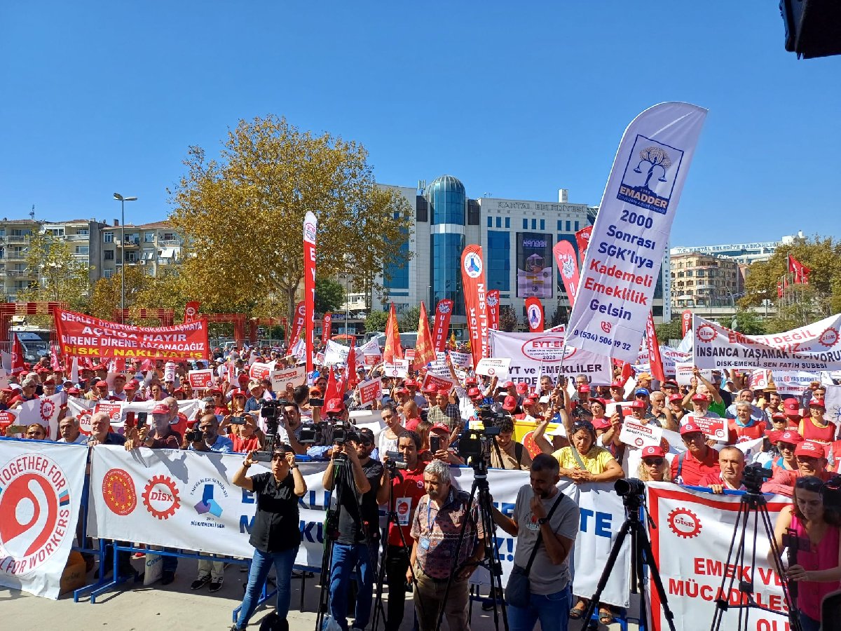 Alanda toplanan binlerce emekli, “Yaşasın örgütlü mücadelemiz”, “Susma haykır emeklilik haktır”, “Sefalete mahkum olmayacağız, "İnsanca yaşamak istiyoruz” sloganları attı.