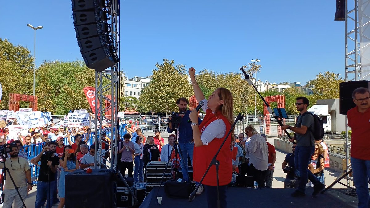 DİSK Genel Başkanı Arzu Çerkezoğlu yaptığı konuşmada şunları söyledi: