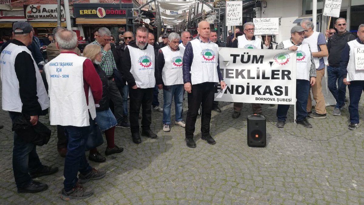 Tüm Emekliler Sendikası Bornova Şubesi Başkanı Mehmet Düşünceli tarafından okunan açıklamada, depremler sonrası 44 binin üzerinde insanın hayatını kaybettiği, milyonlarca yurttaşın evinden, köyünden, şehrinden olduğu, şehirlerin tarih ve kültürlerinin yok olduğu hatırlatıldı.
