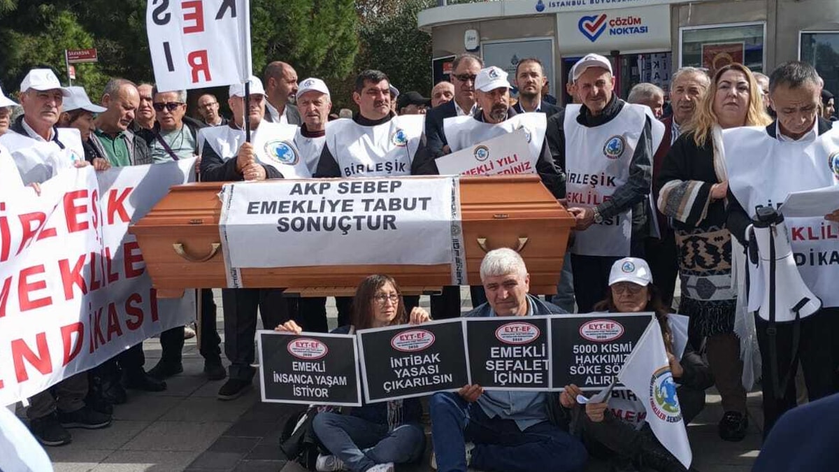 Birleşik Emekliler Sendikası, Emekli-sen, Tüm Emekli-sen ve EYT Emekliler Konfederasyonu'nun destek verdiği İstanbul Kartal Meydanı'ndaki eylemde "Susma, sustukça sıra sana gelecek" sloganı atıldı.