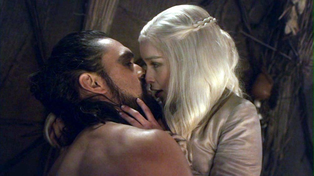 Sahnelerin çekimini anlatan Clarke, “Tuvalete gidip ağlıyordum, sonra dönüp sahneyi çekiyorduk” dedi. Daenerys’in kocası Khal Drogo’yu canlandıran Jason Momoa’nın cinsellik sahnesi öncesi kendisini rahatlattığını ve desteklediğini de belirtti.