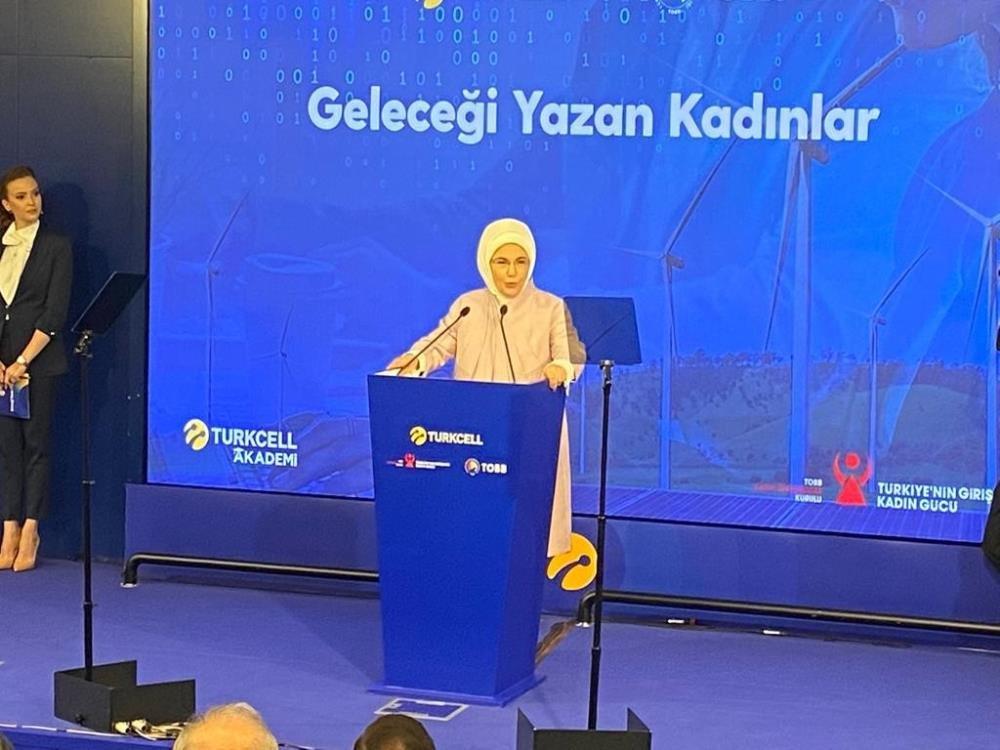 Cumhurbaşkanı Recep Tayyip Erdoğan’ın eşi Emine Erdoğan’ın katılımıyla düzenlenen "Geleceği Yazan Kadınlar İklim Fikir Maratonu Projesi" final töreni düzenlendi. Programa; Aile ve Sosyal Hizmetler Bakanı Derya Yanık, Turkcell Yönetim Kurulu Başkanı Bülent Aksu, Türkiye Odalar ve Borsalar Birliği Başkan Yardımcısı Tamer Kıran da katıldı. Program, sürdürülebilirliğin önemine dikkat çekmek için kısa film gösterimi ile başladı.