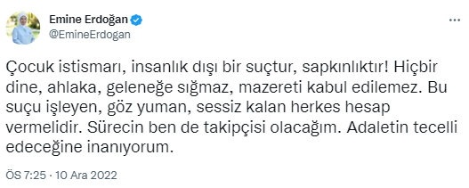 Sosyal medya hesabı üzerinden olaya tepki gösteren Emine Erdoğan şu ifadeleri kullandı: