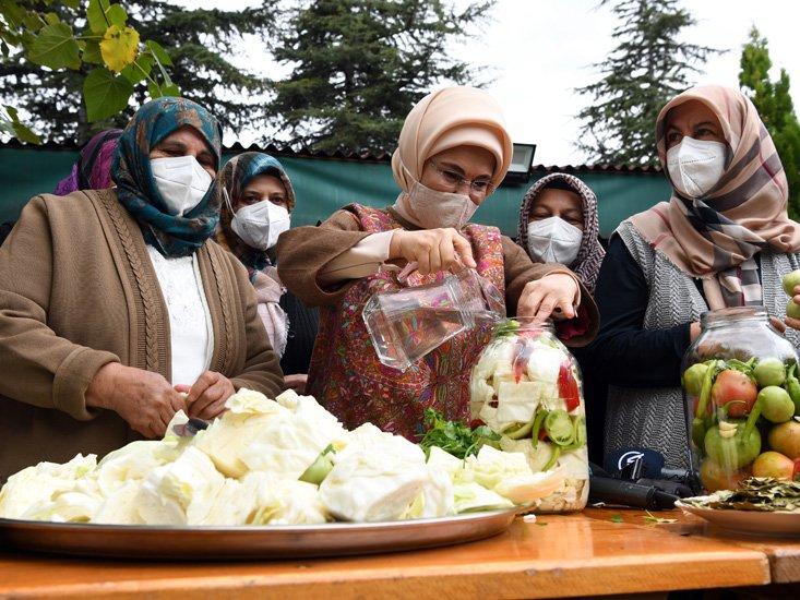 Daha önce evde bu şekilde hiç turşu kurmadığını söyleyen Emine Erdoğan, annesinin küçükken turşu yaptığını ve ona yardım ettiğini anlattı. Emine Erdoğan, "Bundan sonra evde turşuları ben yaparım artık, çok zevkli" dedi.