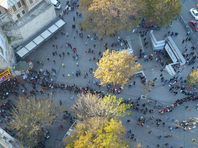 Yoğunluk sebebiyle meydan çevresindeki yolda trafiğin aksadığı, trafik polislerinin bölgede araç geçişleri ve hatalı parklara müdahale ettiği görüldü. Güvenlik görevlileri de kuyruklarda sorun yaşanmaması için nöbet tuttu.