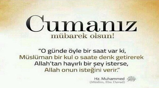 Yükü sevgi, özü saygı, gücü barış, süsü hoşgörü oIan mübarek dinimizin seçtiği haftanın özeI günü oIan Cumanızı kutIarım…