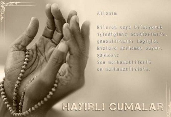 Yüce Rabbim! Omuzumuzda onca günah yüküyIe, sana açtık ellerimizi. Derinden bir of değiI, yürekten bir af diIiyoruz. HayırIı cumaIar.