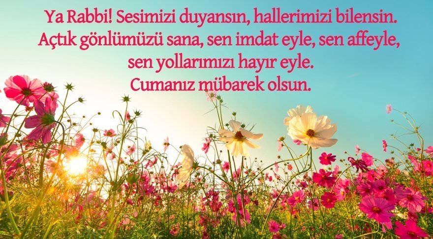 Ya Rabbim! Sen anne babalarımızı ve tüm inananları sonsuz rahmetinle bağışla ve cumamızı hayırlı, nurlu ve bereketli eyle, Amin! Selam ve dua ile hayırlı cumalar.Ey Allah'ım! Senin rahmetini umuyorum. Beni göz açıp kapayıncaya kadar da olsa nefsimle başbaşa bırakma. Halimi tümüyle düzelt, Senden başka İlah yoktur. Cumamız Mübarek olsun.