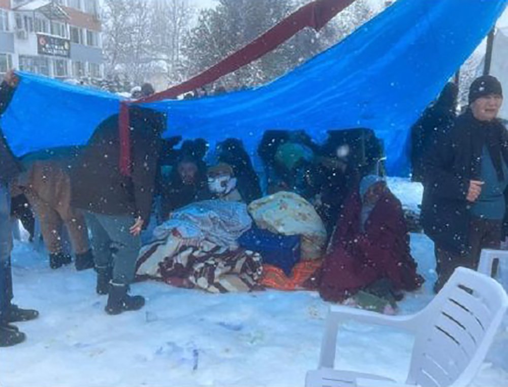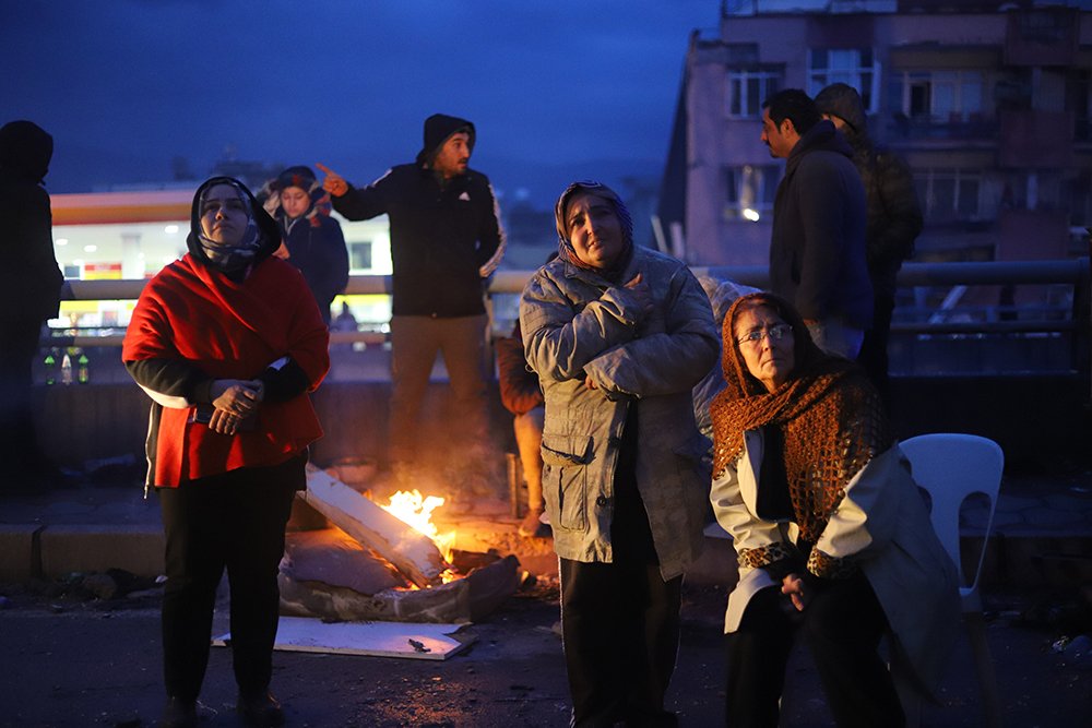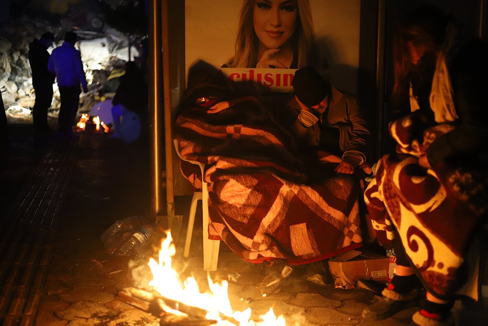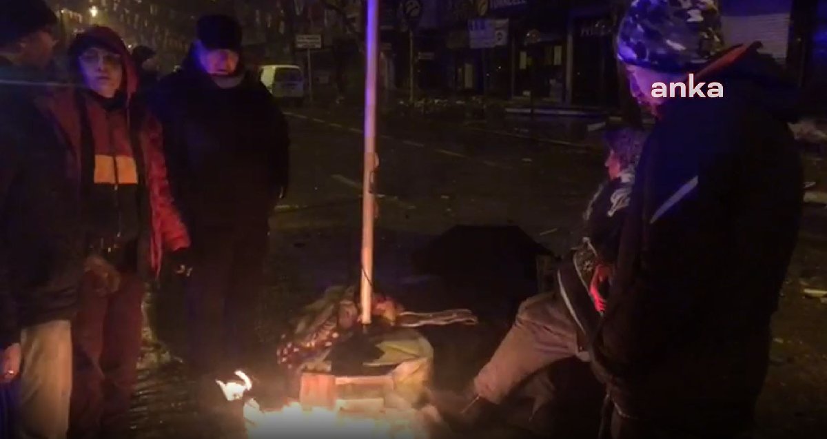 Bir taraftan enkaz altındaki yakınlarının acılarını yaşayan insanlar, bir taraftan da devam eden artçı depremler nedeniyle kaldıkları sokakta soğukla mücadele ediyor.