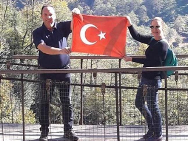Cemiyet hayatının tanınmış simalarından Ender ve Gülşah Alkoçlar çifti Artvin'de bulunan ve bir doğa harikası olarak adlandırılan Mençuna Şelalesi'ne gitti. Alkoçlar, çifti şelalede Türk Bayrağı açarak bu anları sosyal medya sayfasından takipçileriyle paylaştı.