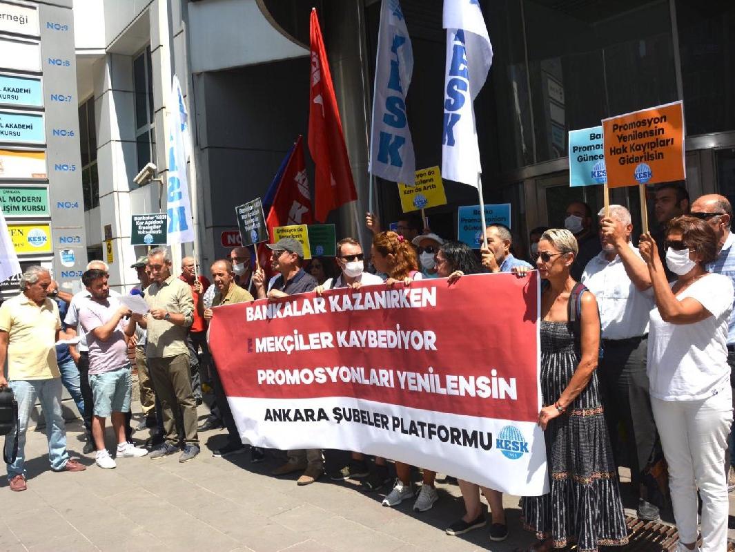 KESK Ankara şubeler platformu, “Bankalar kazanırken emekçiler kaybediyor, promosyonlar yenilensin” diyerek basın açıklaması yaptı.