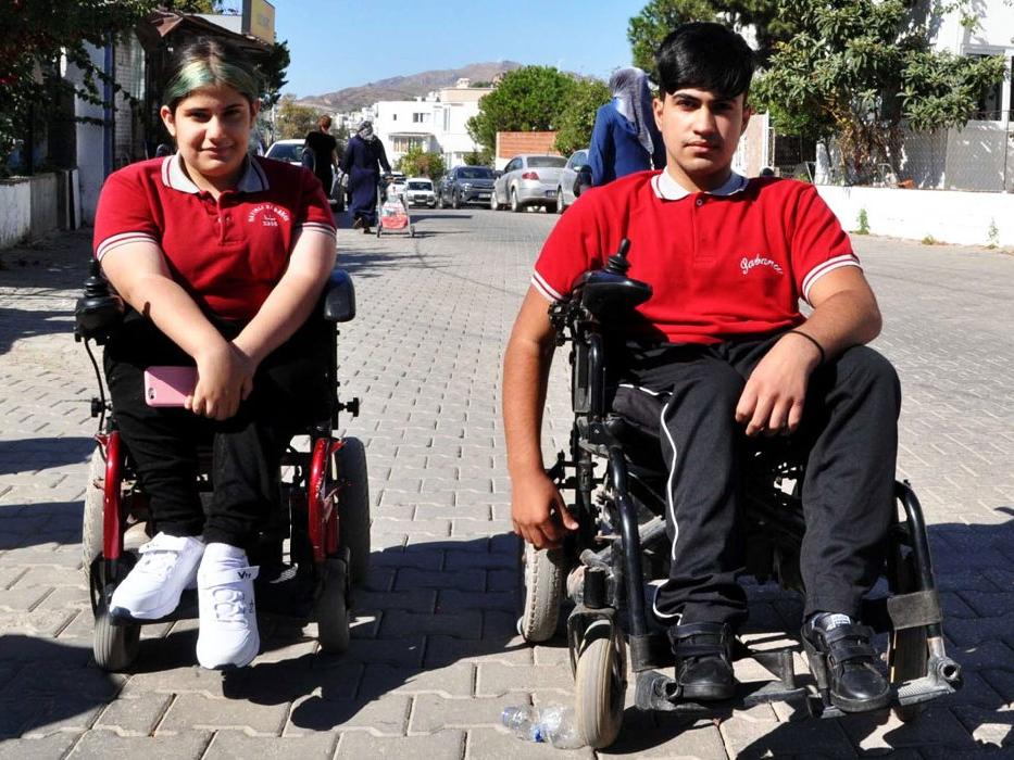 Sınavlarda gösterdikleri üstün başarı ile öğretmenlerinin takdirini kazanan Atan ve Yobaş okulların açıldığı günden bu yana servis araçlarının asansörü olmaması nedeniyle kazandıkları liseye gidemedi.