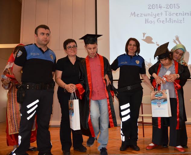 Okulun etkinlik salonunda yapılan programda, öğrenciler, haftalardır hazırlandıkları, gösterileri sergiledi. Enstürman çalan bazı engelli öğrenciler, katılımcılardan büyük alkış aldı. Ardından, "mezuniyet belgesi" heyecanı yaşandı. İsimleri okunan öğrenciler, öğretmenleri eşliğinde tek tek sahneye çıkarak, belgelerini aldılar. Daha sonra ise, polislerden oluşan müzik grubu sahneye çıktı. Eğlenceli anların yaşandığı törende, bazı veliler ve öğretmenler de duygularını dile getirdi. Konuşmacılar, kendilerine sürekli destek olan, ve öğrencileri yalnız bırakmayan İstanbul Emniyet Müdürü Selami Altınok'un eşi Gülhan Altınok'a, TDP Şube Müdürü Yonca Barış Bengül ve emniyet personeline teşekkür etti.