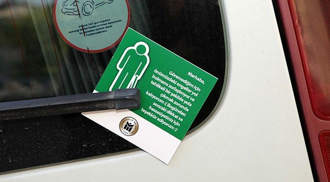 Muhtarlıklara, engelli vatandaşların ailelerine, sivil toplum kuruluşlarına, semt birimlerine dağıtılan kartlarda, “Merhaba arabanızı/eşyanızı buraya koyduğunuz için geçmem çok zor oldu” ya da “Göremediğim için önümüzdeki engeller yol bulmamı zorlaştırıyor ve tehlikeli bir şekilde yola çıkmak zorunda kalıyorum. Bugünden sonraki dikkat ve hassasiyetiniz için teşekkür ediyorum” gibi ifadelere yer veriliyor. Her insanın potansiyel bir engelli adayı olduğunu da vurgu yapan Yenimahalle Belediye Başkanı Fethi Yaşar, "Hemen hemen her yerde bulunan engelli park yerleri ve görme engellilerin yön takibini kolaylaştırmak için kaldırımlara yapılan kabartma takip izleri, bu kartlar sayesinde engeli olmayan vatandaşlar tarafından engel teşkil etmeyecek." dedi.