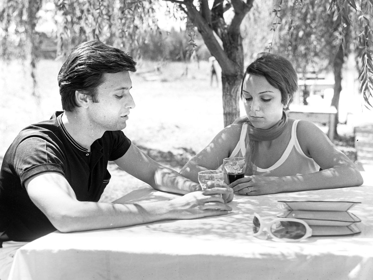 Engin Çağlar: "Yok, ben 16 yaşında lisede okuyan Filiz ile beraberim. Onuncu sınıfta. Komşuyuz aynı sokakta, komşu kızı. Bir de kardeşi var ufak. Bana geliyor 'Engin ağabey' diyerek fotoğraf istiyor benden. O bizim hani artist fotoğrafları var ya meşhur imzalayıp verdiğimiz. Bir gün dedi ki bana 'Ablam seninle röportaj yapmak istiyor. Müsait misin?' 'Kim kızım senin ablan? dedim. 'Biz aşağıda oturuyoruz' dedi. 7 apartman yanda. Ben o hafta film çalışmasından gelmişim. Geceden yorgunum. Tatil vermişler. Camı açtım, nefes alıyorum, nefes veriyorum baktım sokağın köşesinde çok güzel bir kız geliyor. O zaman böyle maksi pantolon, uzun saç falan. Dedim 'Kim bu yahu?' Bir arkadaşım da bana, 'Sizin sokakta çok güzel bir kız var. Bizim yazlıktan komşumuz' dedi. Baktım bu kız geliyor. Acaba bu söyledikleri kız o mu? Ben kimseyi tanımam. Geldi. O da şöyle bir baktı bana. Ben de camdan dışarıya bakıyorum. İndi aşağıdaki sokağa. Ben de baktım 6 apartman sonra içeriye girdi. 'Benim arkadaşın söylediği kız bu' dedim kendi kendime. Kardeşine dedim 'Gelsin.' Röportaja geldi benimle. Onuncu sınıfta, 16 yaşında. Yani yarışma ondan sonra. 16 yaşından beri bende. Yarışma çok sonra. Müsaade aldı benden."