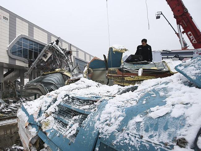 YHT ile yol kontrolü yapan kılavuz lokomotifinin çarpıştığı Yenimahalle ilçesindeki Marşandiz istasyonunda enkazın kaldırılması çalışmalarına gece yarısına kadar devam edildi.