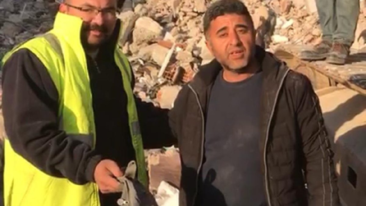 Beypazarı, 3 gündür çalıştıkları enkazda bulduğu altın ve para dolu çantayı bina sahibi Sedat R'ye teslim etti. Çantayı teslim alan Sedat R, Beypazarı'na teşekkür etti. (AA)