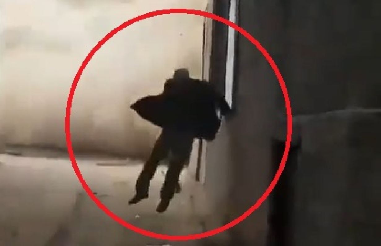 Yere düşen kişi, ayağa kalkıp, üzerine doğru gelen toz bulutundan kaçtı. Binanın çökmesi ve kaçan kişinin o anları, cep telefonu kamerasıyla kaydedildi.