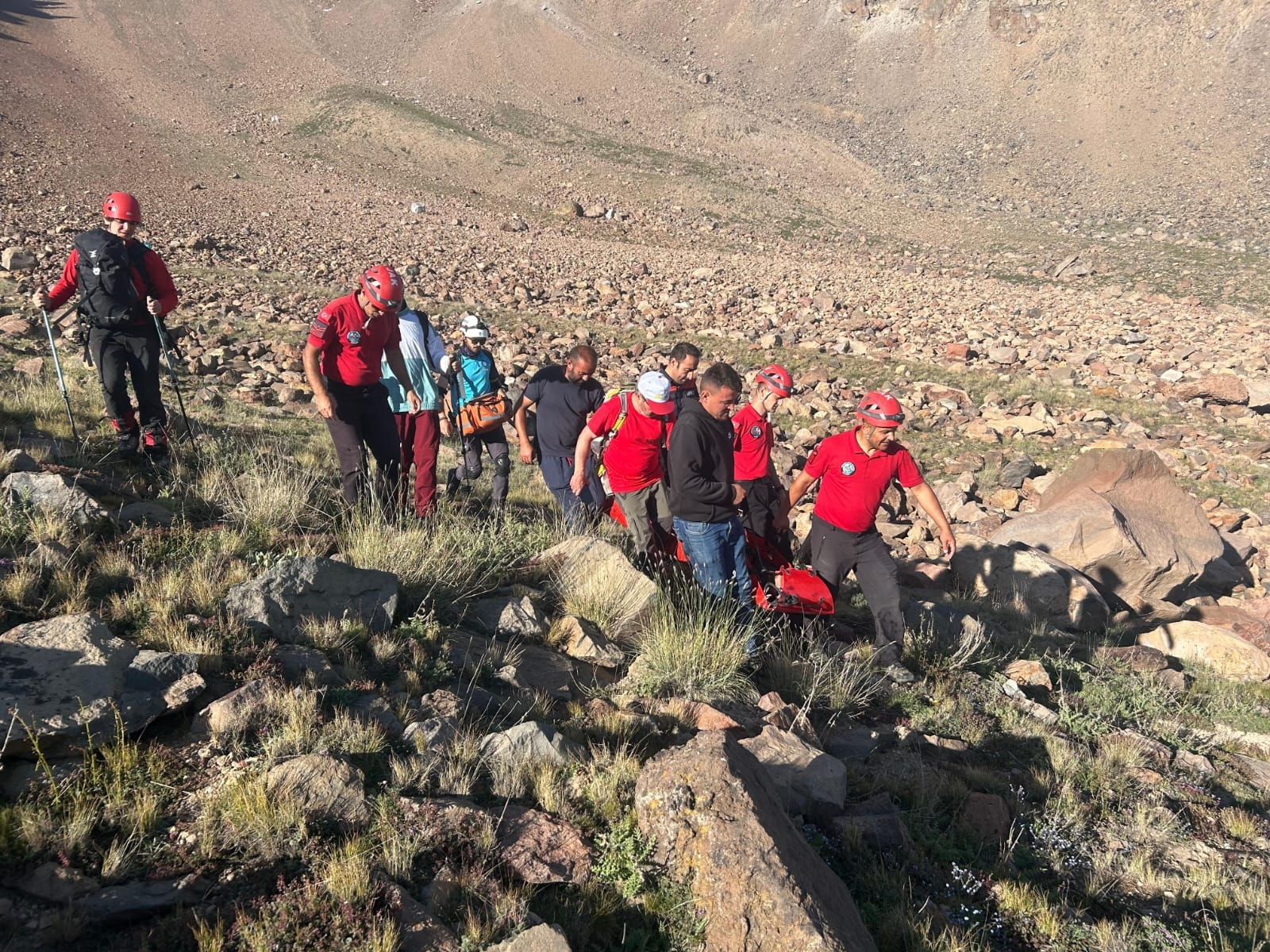 Erciyes Dağı'na zirve tırmanışı yaptıktan sonra inişe geçen iki dağcıdan A.K, ayağının burkulması sonucu yaralandı.