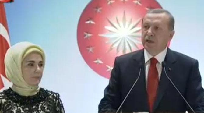 Ak Saray'da gerçekleştirilen ve çok sayıda ünlü ismin de katıldığı resepsiyonda Cumhurbaşkanı Erdoğan bir konuşma yaptı.