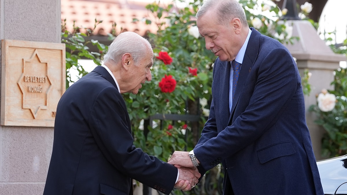 Cumhurbaşkanı ve AKP Genel Başkanı Recep Tayyip Erdoğan, saat 15.50'de, MHP lideri Devlet Bahçeli'nin Beytepe'deki konutuna geldi. Devlet Bahçeli, Erdoğan'ı, konutun kapısında karşıladı.
