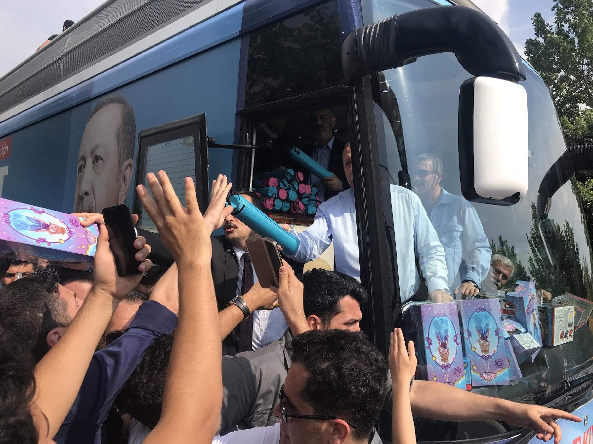Erdoğan, önceki seçimlerde çay paketleri dağıtmaya başladı. Ustalık dönemi için bunu uygun görmüştü. Ziyaret ettiği yerlerde otobüsten vatandaşa çay paketleri fırlattı. Sel felaketinin yaşandığı bölgelerde de aynı şeyi yapınca ağır eleştirildi.