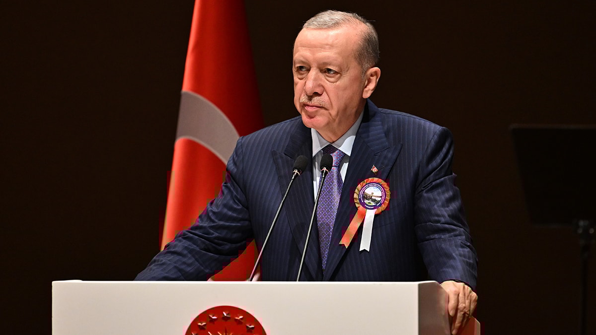 Cumhurbaşkanı Erdoğan, "Değerli arkadaşlar, coğrafi bakımdan, stratejik avantajlar sunduğu kadar tehdit ve tehlikeleri de beraberinde getiren bir konumda yer alıyoruz. İnsanlığın gündemini meşgul eden, hemen her kriz ülkemizin çevresinde yaşanıyor. Rusya ile Ukrayna arasındaki savaş iki buçuk yılını geride bırakmak üzere. Bir tarafın diğerine tam üstünlük sağlayamadığı çatışmalar zaman zaman tırmanarak ve ciddi can kayıplarına ve yıkımlara yol açarak devam ediyor. Yakın gelecekte üzülerek ifade etmek isterim ki savaşı sona erdirmeye dönük güçlü bir irade de görülmüyor. Bölgemizin bir müddet daha savaşın yükünü çekmeye devam edeceği anlaşılıyor. Türkiye olarak savaş tüccarları dışında kimseye bir faydası olmayan ve ikili komşumuza da zarar veren bu kan deryasını durdurmak için elimizden geleni yapıyoruz, yapmayı da sürdüreceğiz" dedi.