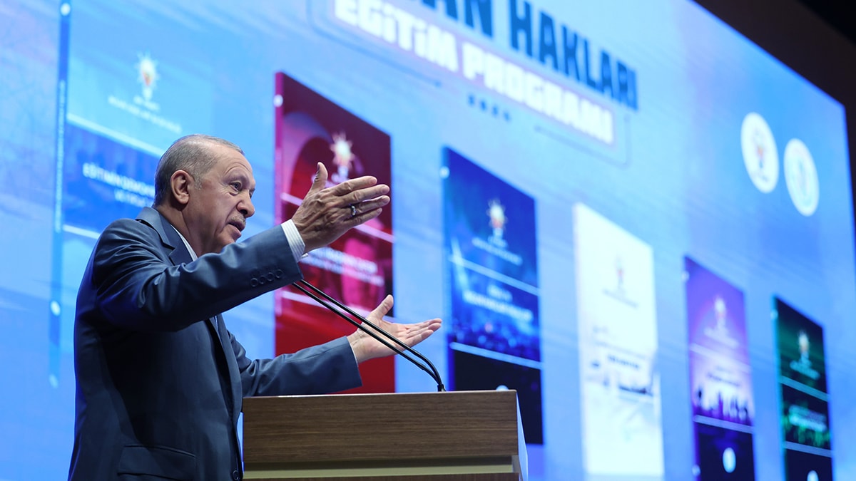 Erdoğan, AKP İnsan Hakları Eğitim Programı'nda konuştu.Erdoğan, "Soykırım başlayalı tam 10 ay oldu. Bu sürede 16 binden fazla çocuk öldü, 40 bin masum insan şehit edildi. İsrail, Gazzelileri sadece bombalarla öldürmüyor, aç bırakarak da katlediyor. Dikkat edin; normalde insanlığı ayağa kaldırması gereken bu zulüm karşısında Birleşmiş Milletler Güvenlik Konseyi'nden 'çıt' yok." ifadesini kullandı.