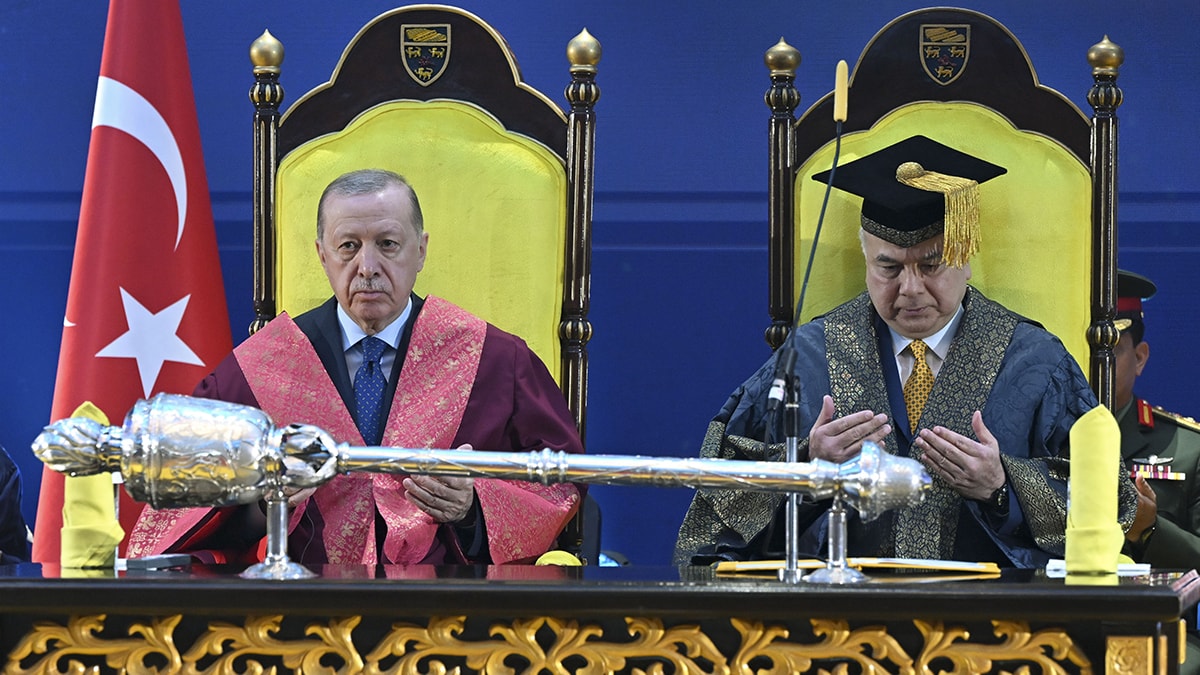 Putrajaya Uluslararası Kongre Merkezi'nde, Perak Sultanı Nazrin Şah tarafından Cumhurbaşkanı Erdoğan'a verilecek fahri doktora beratı için tören düzenlendi.
