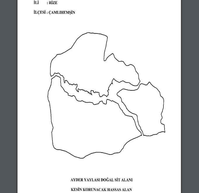 "Rize İli, Çamlıhemşin İlçesi sınırları içeriseinde bulunan Ayder Yaylası Doğal Sit Alanı'nın koruma statüsünün değerlendirilmesi sonucunda, ekli kroki ile listede sınır ve koordinatları gösterilen alanın kesin korunacak hassas alan olarak tescil ve ilan edilmesine 1 sayılı Cumhurbaşkanlığı Kararnamesi'nin 109'uncu maddesi gereğince karar verilmiştir."