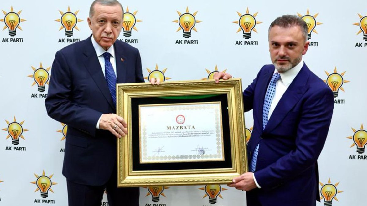 AKP Genel Başkan Yardımcısı Erkan Kandemir, sosyal medya hesabından yaptığı paylaşımda, Cumhurbaşkanı Erdoğan'a mazbatasının takdim edildiği ana ilişkin fotoğrafa yer verdi.