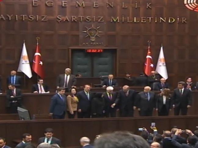 Eskişehir adayı Burhan Sakallı ve beraberindekiler kürsüye çıktığında gazetecilerin objektiflerine o ilginç anlar yansıdı.